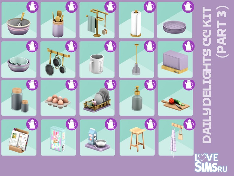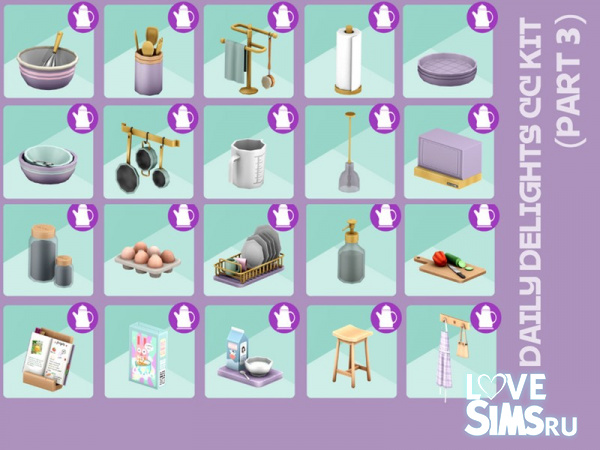 Этот набор задуман так чтобы кухня ваших симов выглядела уютной и обжитой. В него входит мебель, бытовая техника и декоративные элементы.