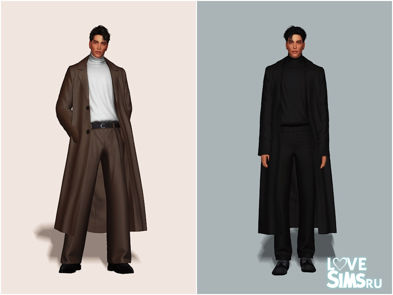 Мужское свитер с высоким воротником и длинное пальто, доступно 25 цветовых вариантов.
