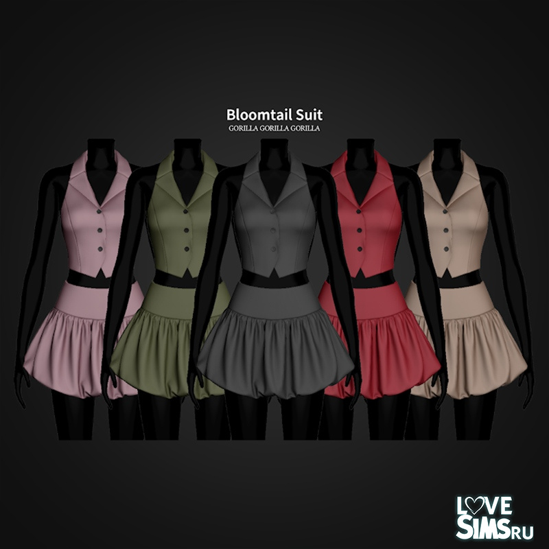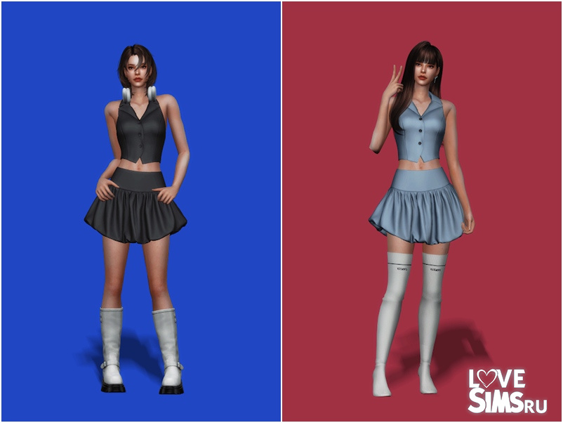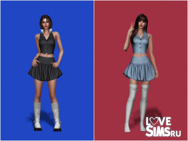 Костюмчик для симочки включающий жилет на пуговицах и пышную мини-юбку. Доступно 20 цветов.