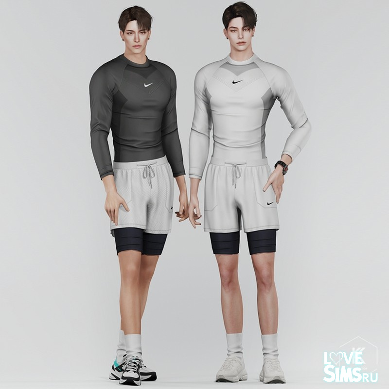 Мужской спортивный комплект, включающий в себя верхнюю часть (футболку) и нижнюю часть (короткие шорты).