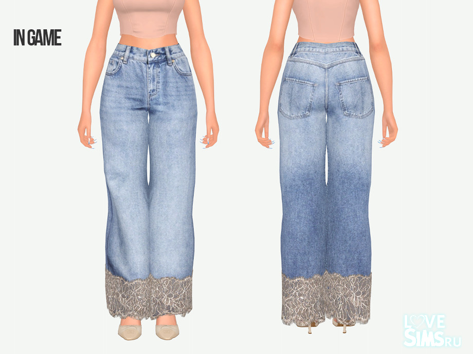 Джинсы широкого кроя и с кружевной отделкой по низу штанин, доступно 36 цветов.