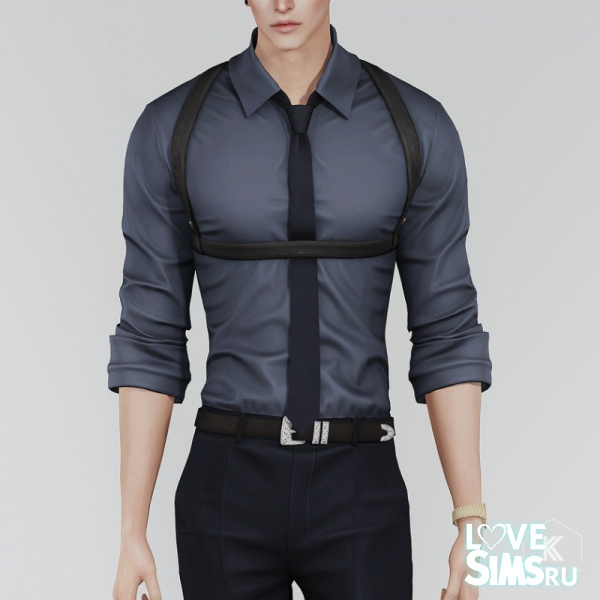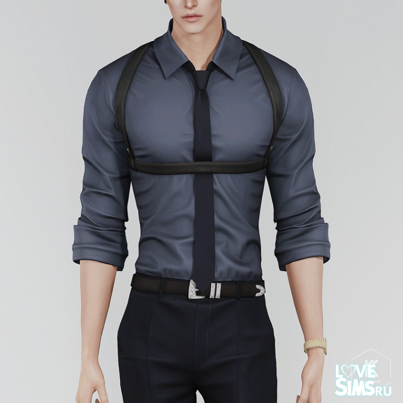 20 вариаций дерзкого стиля! Классическая рубашка + галстук с кожаной портупеей для сима.