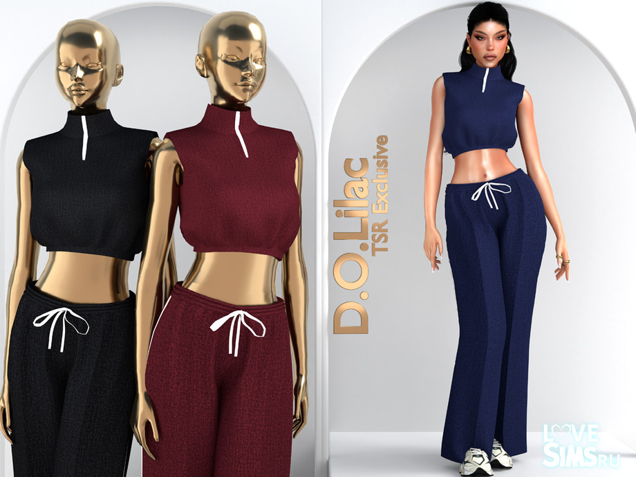 Укороченный спортивный костюм на молнии без рукавов для симочек представлен в трёх образцах.