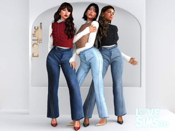 Наряд состоит из рубашки с вязаной жилеткой (доступно 5 цветов) и расклешенных джинсов (доступно 6 оттенков).