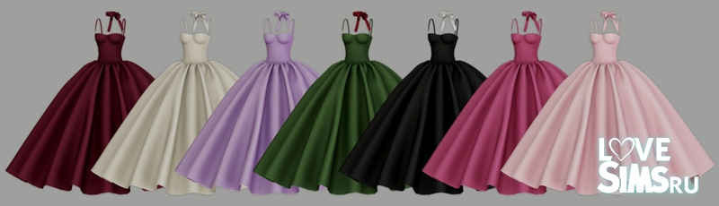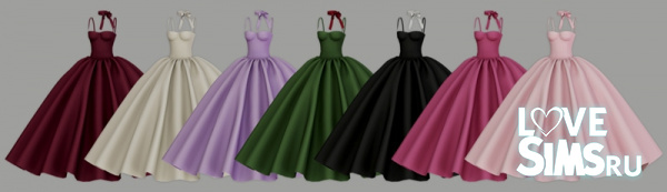 Изысканное платье без рукавов, украшенное пышной юбкой, дополнено атласной повязкой на шею с изящным бантом. Доступно в палитре из 37 оттенков.