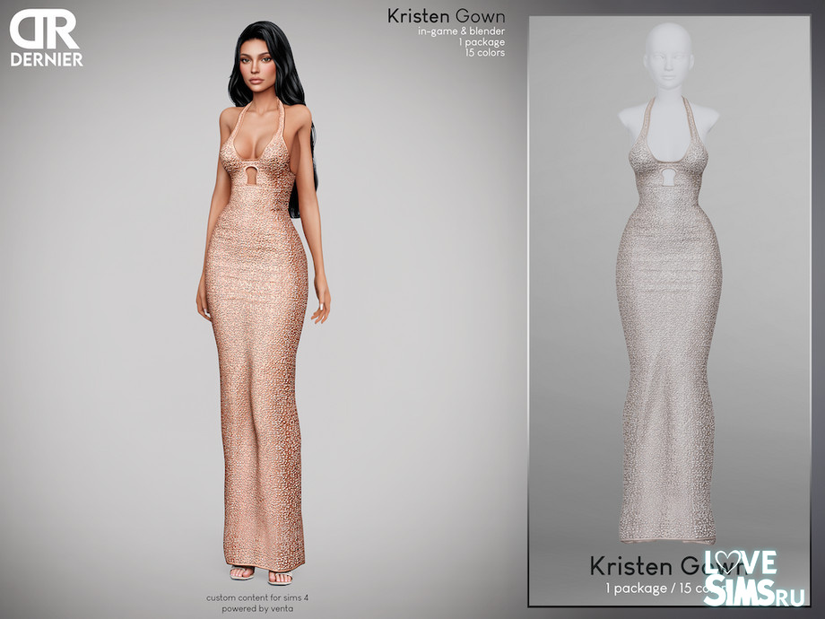 Длинное, струящееся платье в пол, украшенное тонкими бретелями и имеющее глубокое декольте. Доступно 15 образцов.