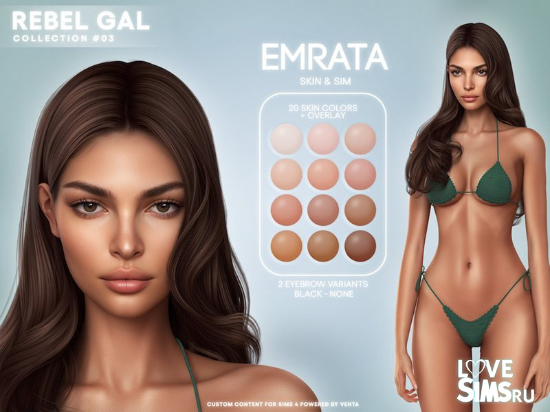 40 образцов скинтона и 20 оттенков кожи, также представлено 2 варианта оформления бровей. Оригинальное название Emrata Skin от VentaStudio.