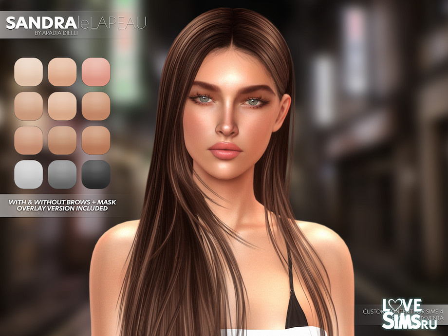 Реалистичный скин представлен в 20 образцах и 10 оттенках, также есть 2 варианта оформления бровей. Оригинальное название Sandra Skin от VentaStudio.