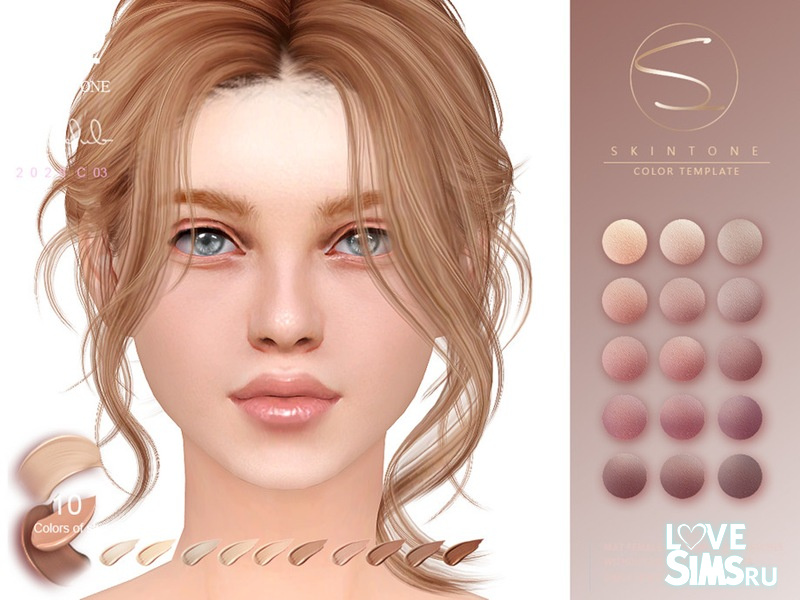 Натуральные оттенки женской кожи, включая десять образцов.