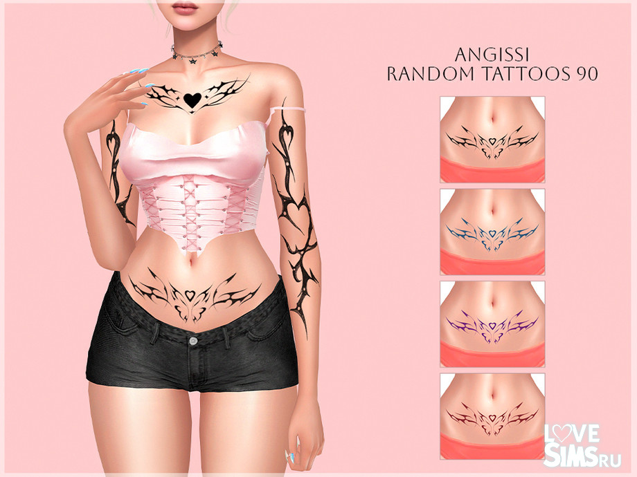 Рисунок на нижней части живота выполнен в четырех оттенках и предназначен для женских и мужских персонажей. Оригинальное название Random tattoos 90 от ANGISSI.
