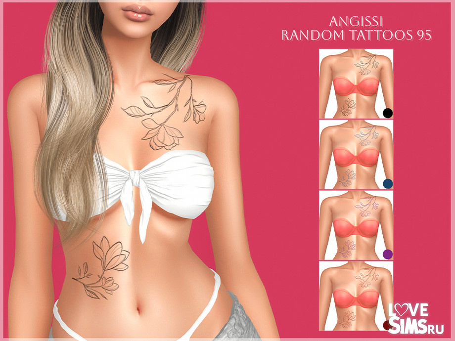 Минималистичная татуировка в виде ветви цветущих магнолий с листьями, представлена в 4 цветах, доступна только женским персонажам. Оригинальное название Random tattoos 95 от ANGISSI.